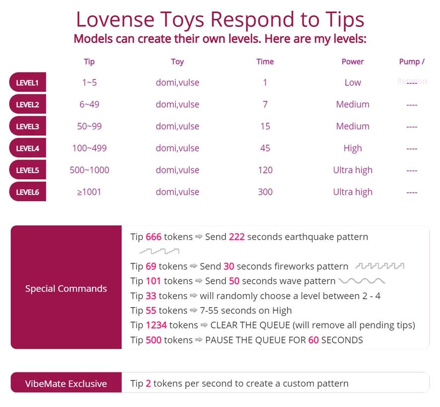 Doggy style, Onani, Kukbetyg, Högklackat, Oljeshow, Smiskning, Fot Fetisch, Topless, Sexleksaker, Cowgirl, Analleksaker, Dildo eller Vibrator, Bröstklämmor, Gagging, Korsett, Rökning, Fingrar